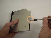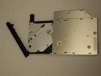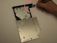 To remove excess parts from the optical drive press down on the plastic tab behind the tray's bezel.