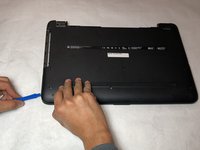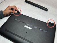 The first step of this process is to peel off two rubber feet from the bottom of the laptop.