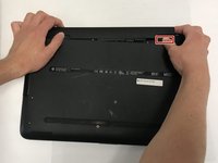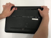 Place the laptop with the back panel facing up and the battery compartment facing away from you.
