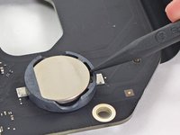 • Use the tip of a spudger to pry the motherboard battery out of its socket.