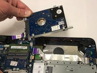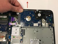 Also use a spudger and release the TWO cables attaching the hard drive to the motherboard. Another ribbon cable is located where the fan was sitting.