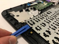 Locate the damaged keyboard and lift up with the prying tool to remove.