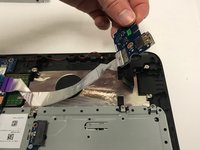 Lift up the cable port and place it to the side but do not remove completely from the laptop.
