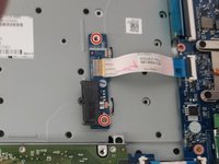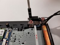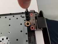 Unscrew the two 3mm JIS #0 screws that hold the optical drive (CD-reader) connection to the device.