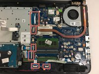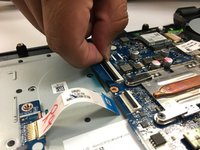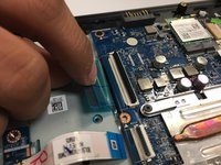 Disconnect the wire securing the whole motherboard located at the top to the motherboard.