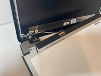 Use the #00 Phillips-head screwdriver to remove the four 3 mm screws in each corner and carefully detach the screen and lay it onto the keyboard.
