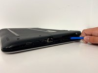 Place a plastic opening tool in-between the upper and lower pieces of the bottom cover.