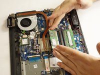 Push the two metal tabs on the side of the RAM module outwards, towards the battery and CMOS compartments (up and down).