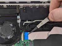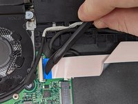 Use the blade end of the spudger to remove the black square sticker covering the WLAN cables.