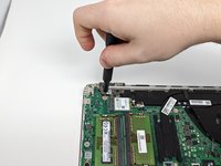 User the knife end of the Halberd spudger to wedge between the black plastic connector and the motherboard. Lightly twist the spudger blade up. The connector should pop off.