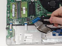 Use the nylon-tipped reverse tweezers to grip the blue tab on the ribbon cable and pull it gently out of the socket.