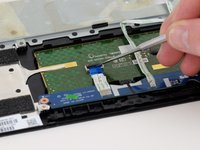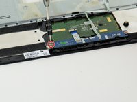 Now disconnect the touch pad ribbon cable by lifting the connector.