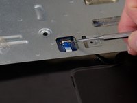 Disconnect the power button ribbon cable by lifting the connector.