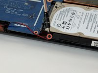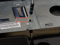 Now remove the screws indicated by an arrow stamped into the metal, located where the keyboard was.