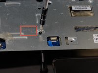 Using either a credit card or flat spudger, wedge it between the palm rest and the keyboard.