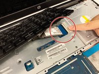 Lift the flip covering the connection port and remove the connecting strip to detach the keyboard from the motherboard.