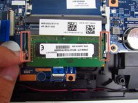 Gently bend the plastic retainers away to free the RAM stick and remove it from the device.