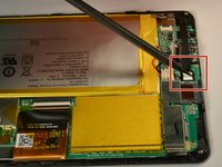 Locate the small grey connector near the top of the device. Using the Spudger tool, gently pull it away from the device until it releases its connection.