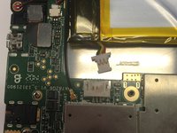 Using a plastic card or a nylon spudger, carefully pry the battery from the adhesive on the tablet.