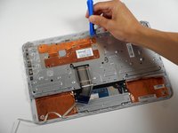 Use a plastic opening tool to disconnect the keyboard from the keyboard mount by prying along the keyboard’s perimeter.