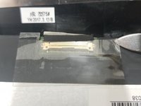 Hold both sides of the tape and gently push back the connector to disconnect the display.