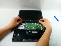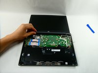 Use a plastic opening tool to pry the keyboard assembly away from the bottom case, prying around the perimeter until it fully separates.