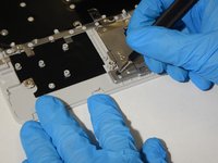 Use a Phillips #0 screwdriver to remove the eleven 0.2 mm screws, including the six from underneath the adhesives.