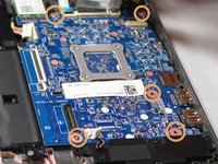 Use your Phillips #0 screwdriver to unscrew the five 0.2 mm screws from the motherboard.