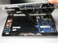 Lift the keyboard so that the inner workings of the laptop are exposed.
