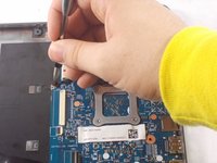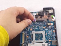 Use a Phillips #0 screwdriver to remove the one 1.3mm screw that connects the speakers and the motherboard together.