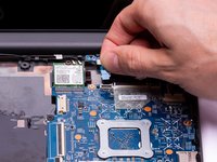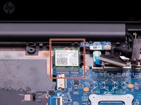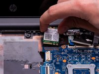 Gently lift and slide the WLAN module out of the WLAN connector on the top of the motherboard.