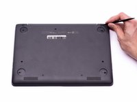 Remove the (4) rubber feet with the plastic spudger to reveal the screws underneath.