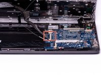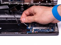 Using either side of the spudger, disconnect the speaker cable from the bundle connector located on the bottom of the motherboard.