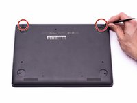 Remove the (2), oval shaped, rubber screw protectors near the hinge of the Chromebook.