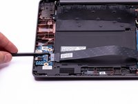 Use either end of the spudger to remove the battery bundled cable connector from the motherboard.