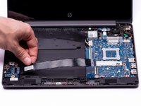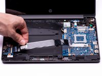 With the ZIF connector tab in the upright position, use your fingers to gently pull the Touchpad ribbon cable out of the ZIF connector.
