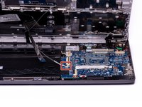 Using the hook on the Halberd Spudger, lift up the ZIF connector tab for the keyboard ribbon cable. They keyboard ribbon cable is the larger of the two ribbon cables.