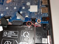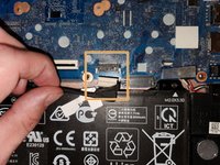 Disconnect the speaker cable from the system board. Pull the cable straight out of the connector by the black plastic portion near the connection point. Disconnect the speaker cable from the system board.