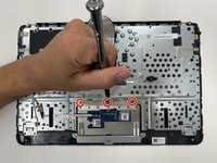 Use the Phillips #0 screwdriver and remove the top three 1.6 mm screws from the touchpad.