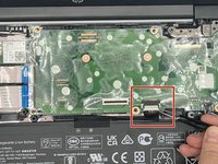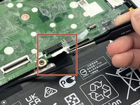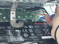 Identify the second cable and the ZIF connector attatching the cable to the motherboard. Then, unclip it with the iFixit opening tool.