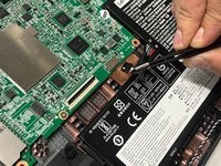 Remove the screws holding the battery in place using a Phillips screwdriver.