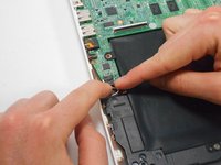 • Use your fingers to pull the white tab out of the black slot above the battery.