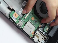 Flip up each of the the two black ZIF locking flaps that secure the keyboard and trackpad ribbon cables to their motherboard sockets.
