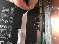 Carefully lift the battery out of its place, avoiding the previously adhered silver ribbon cable in the process.
