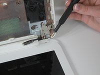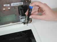 Use a Phillips #0 screwdriver to remove the two 2.9 mm screws that hold the screen frame in place.
