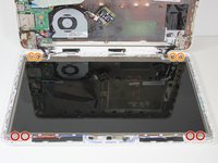 Use a Phillips #0 screwdriver to remove four 2.9 mm screws that attach the screen to the top case of the laptop.