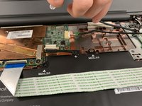 To remove the ribbon cables, lift the latch holding the ribbon cables in place and then pull them free.