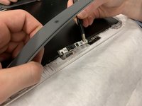 Use the plastic spudger to gently pry around the base of the laptop from the back cover. Continue prying around the entire base of the laptop.