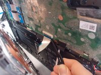 Flip the white plastic tab where the thinner cable meets the main board using the tip of a spudger or a fingernail.