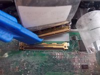 Flip the black plastic tab where the wider cable meets the main board using the tip of a spudger or a fingernail.